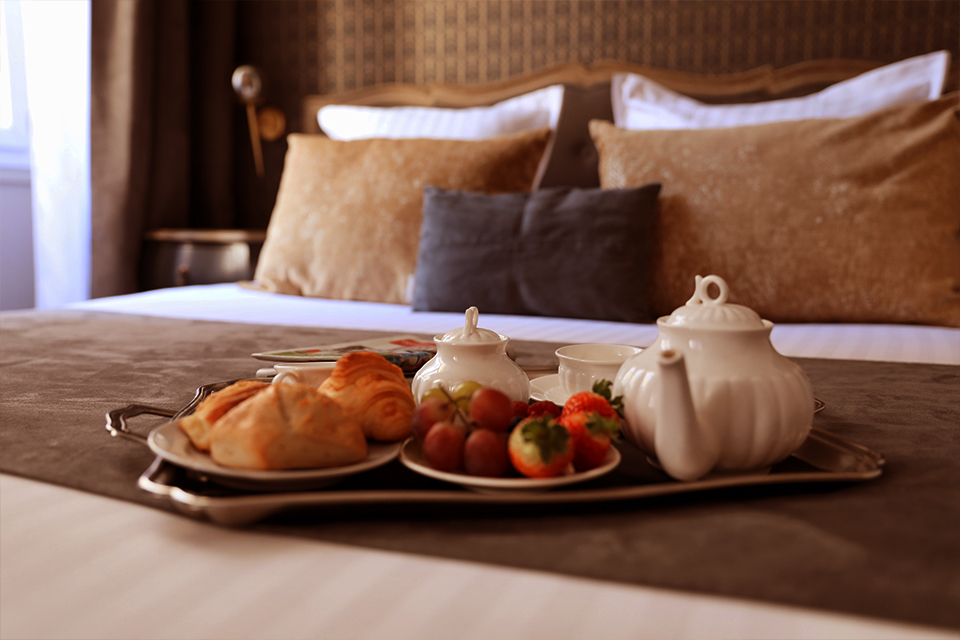 Pains frais, viennoiseries croustillantes à ou fruits frais de saison, sélection de boissons chaudes, notre petit déjeuner en chambre enchantera votre réveil aixois ...